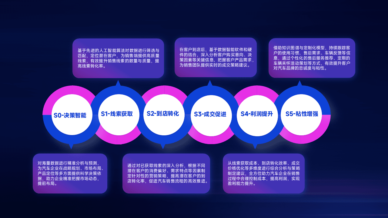通过拓宽潜在客户来源、、优化线索分配并提高到店转化率,,以增强销售效率。。。同时,,利用线索数据不断优化分析模型,,,有效提升转化率,,,扩大营销影响力。。。。